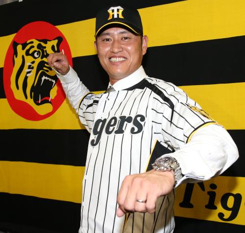 久保のFA移籍に伴う人的補償で阪神入りした鶴岡一成捕手(36)が15日、西宮市内の球団事務所で入団会見し「1面の男」に名乗りを上げた。